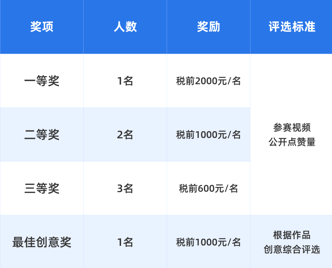 ①人气排名奖:以抖音平台最终有效点赞数为最终评分依据,点赞量即为得分,按分数高低排一二三等奖;